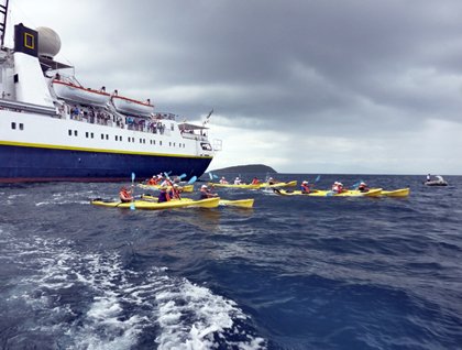 Lars-Eric Lindblad was a visionary man, full of dreams that slowly but surely became reality. He opened the world to travelers, and those exotic and isolated places they had once heard of only through National Geographic, finally became accessible. Lars-Eric took people to Africa, Mongolia, South America, but in 1966 he felt it was time to visit the white south. He chartered an Argentinian vessel, the MS Lapataia, and landed, fifty years ago, on the continent of superlatives—strongest winds, lowest temperatures, fewest species. We have committed the current week to the commemoration of the beginning of this new era of expedition travel. We blew out candles on a cake on the 23rd, to remember the day when 56 Lindblad guests, landed on Antarctica for the first time. We organized a kayaking competition as part of our celebration program, to celebrate adventure, and yesterday we had a BBQ under the moon, with music from our resident artist, Christian Saa, to honor dreaming—the first step towards any accomplishment.