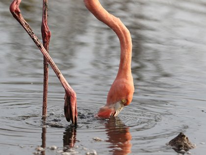 Our hike continued to a brackish water lagoon, where we saw four greater flamingos, a subspecies endemic to the Galapagos Islands. It was a nice surprise, as we never know if the flamingos are going to be present in this area. One flamingo came very close to our group, posing for great photos. Two lava gulls were observed, as wells as a pair of common stilts.
