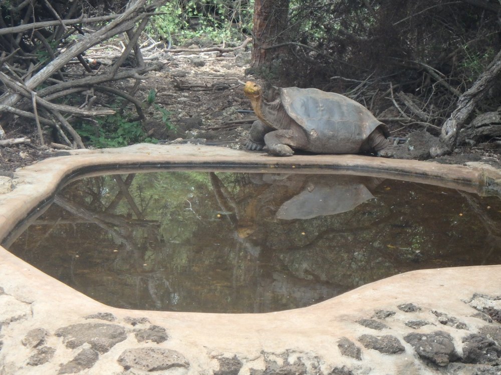 After a delicious lunch ashore, we went out to look for giant tortoises in the wild.  Santa Cruz is home to the second largest population of the second largest species of giant tortoise in the Galapagos.  We were not disappointed.  Despite the drought we are going through, there were many giant tortoises around, either seeking shade or taking a mud bath to cool down a little bit.  Everybody got to see them!