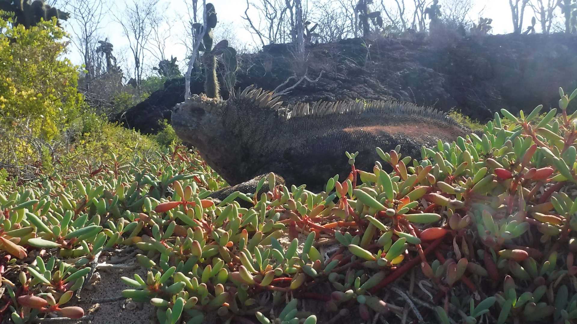 A sunny and bright day welcome us into Dragon Hill, where our target was to find the amazing land iguanas of the Galapagos. The trail was easy, beginning at an organic beach surrounded by shore vegetation where some marine iguanas were warming up.