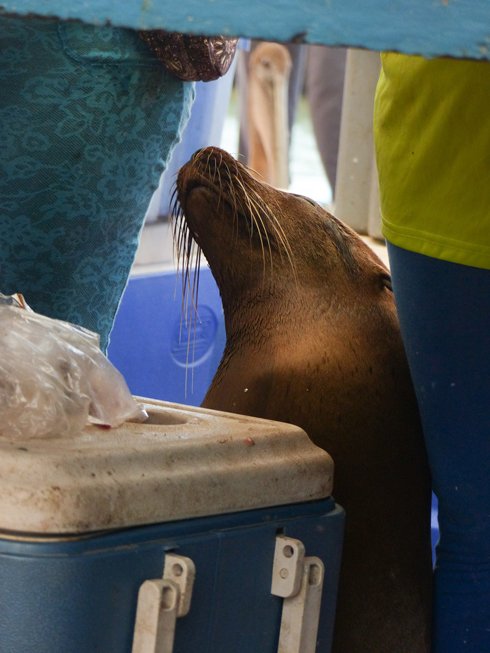 We were prepared to spend almost the full day on shore. Today was giant tortoise day! In the morning the focus was on conservation, protection, breeding, rearing and what species from which island needed help for what reason. Late morning was a walk through town past the fisherman’s wharf where the day’s catch was being sold (to the local human inhabitants), and given away (to the four-finned, two-winged inhabitants).