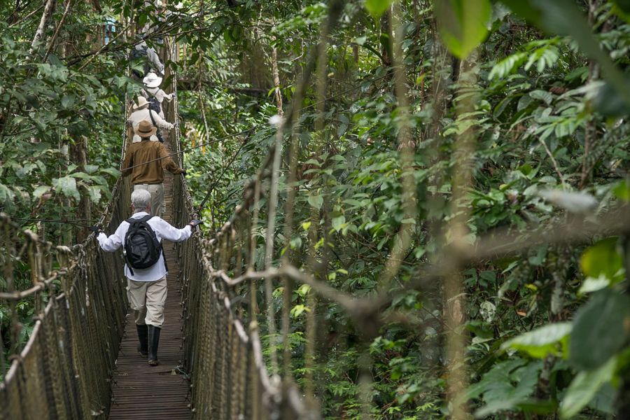 Today, National Geographic Endeavour II visited Cerro Dragon, located on the north part of Santa Cruz Island. We found one of the largest colonies of land iguanas. During our hike, we spotted the iguanas all around the trail. Some basked on the vegetation, and others were active. We saw the zigzag head movement they use to protect their territory and impress females. An Ecuadorian buffet lunch was set up in the dining room. We started with the traditional ceviche and ended with tres leches for dessert! We enjoyed snorkeling and Zodiac rides. We observed wildlife all over the place, including spotted eagle rays, sharks, blue-footed boobies, great blue herons, marine iguanas, and hundreds of other animals. They all reminded us why the Galapagos is so special.
