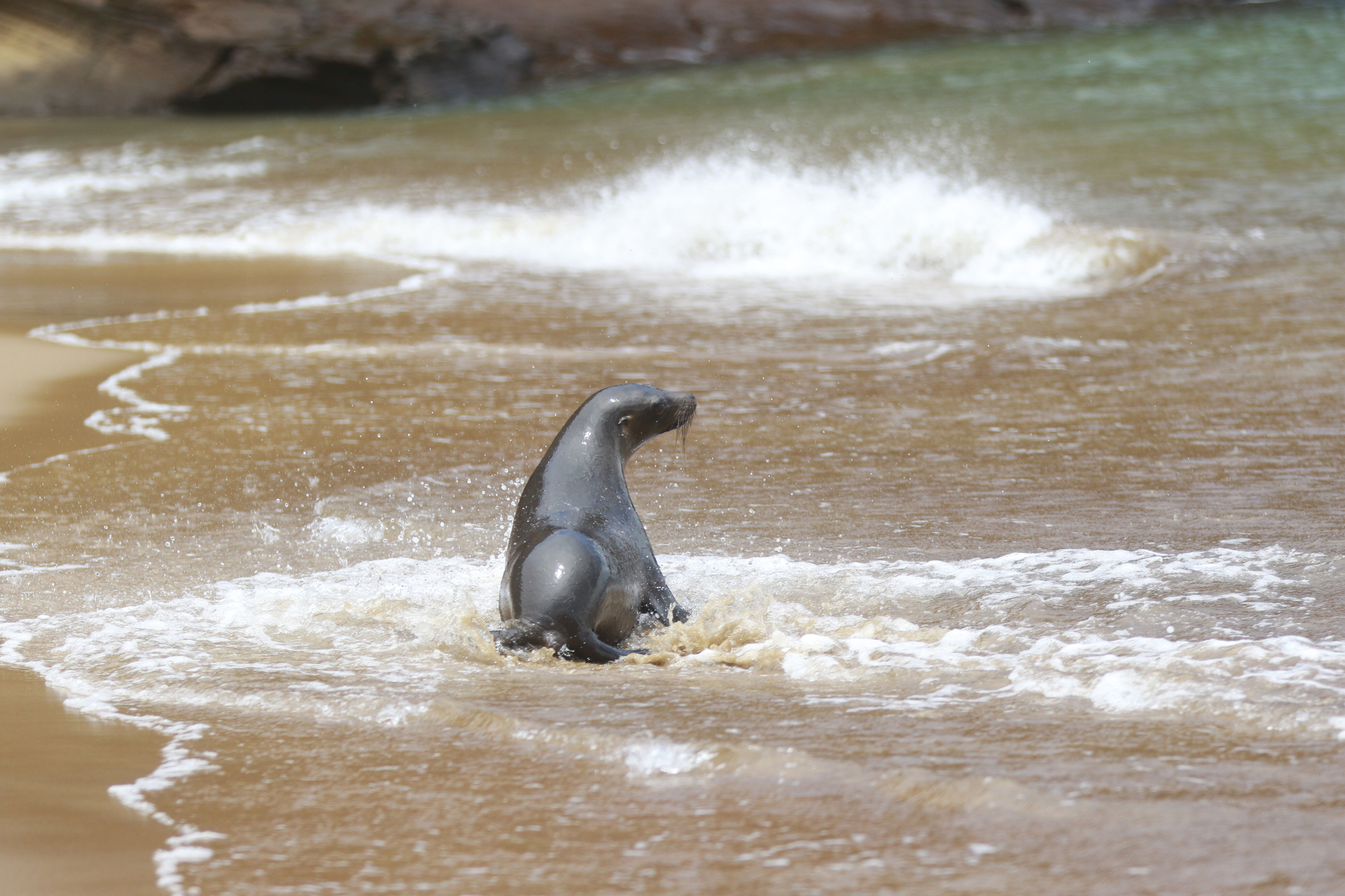 Early in the morning, we landed at the town’s main pier and headed to the Charles Darwin Research Station. We learned all about conservation programs of the past and present in the Galapagos, and we got to see the process to breed giant tortoises. This is one of the most iconic conservation programs on the islands. Afterwards, we walked through the town. We encountered a fish market that had some unusual customers, including sea lions and pelicans waiting for some leftovers.