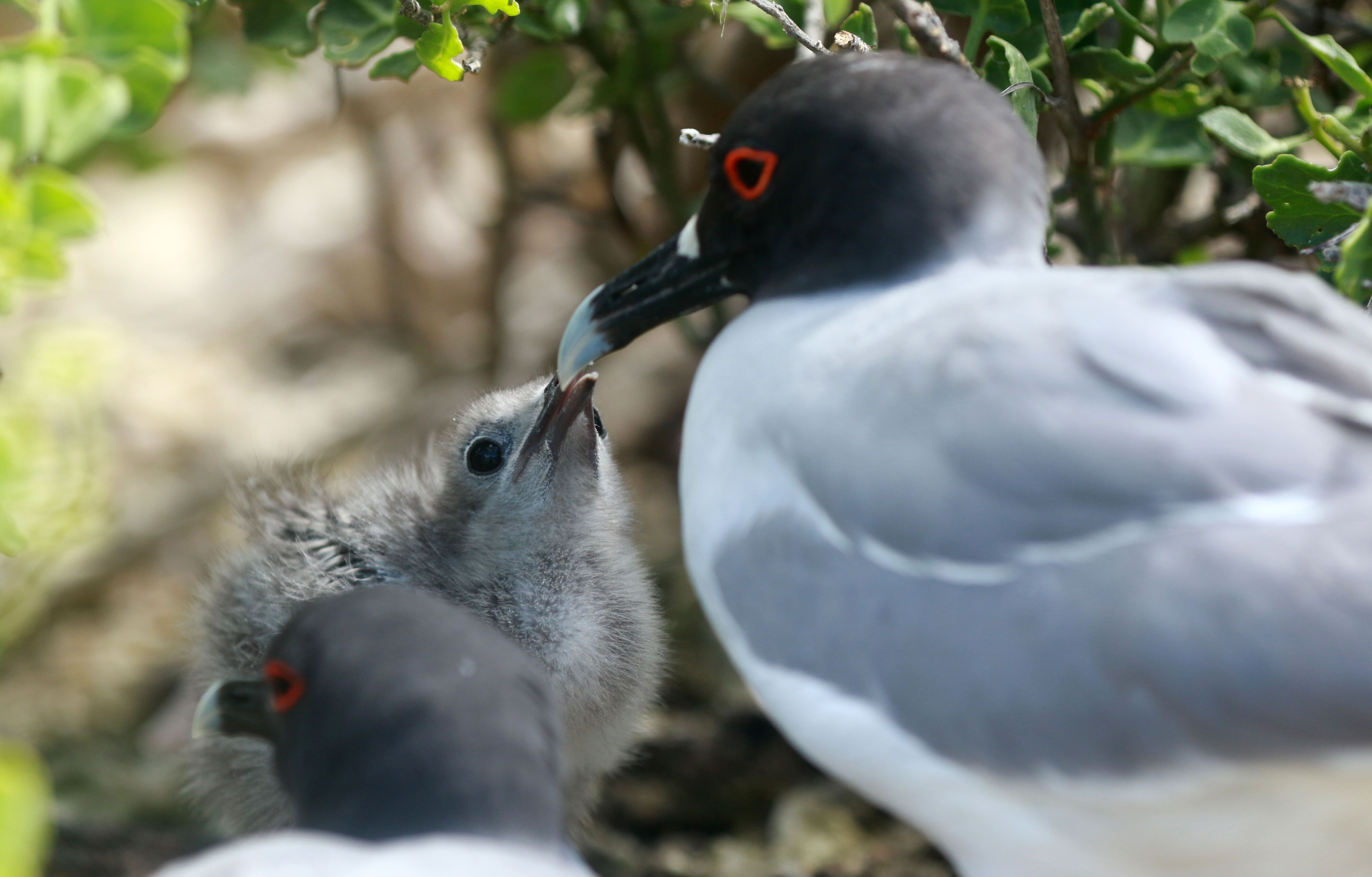 We woke up to super calm waters off the northern coastline of Floreana Island. Perfect conditions for a bit of kayaking among the offshore islets near Post Office Bay! Brown pelicans, egrets, green sea turtles, and red, black, and white mangroves…a peaceful environment for an hour or so before breakfast. Some guests went straight to the beach to walk a few yards through saltbushes and found themselves facing the famous “barrel” of Post Office Bay. It’s been over a century since the barrel was first placed here for use by whalers to exchange correspondence and carry back letters of business, or perhaps letters to loved ones. Today, postcards fill the barrel, but the turnover is fast. Each day, some of the postcards are taken for delivery while others are left behind in hopes that someone will continue the tradition and hand-deliver them in the weeks to come. Between breakfast and lunch, we played in or on the water around Champion Islet, just to the northeast of Floreana Island. We didn’t make a landing but explored by Zodiac, including a birdwatching circumnavigation followed by deep-water snorkeling in incredible waters with parrotfish, angelfish, pufferfish, damselfish…all kinds of fish! Sea lions buzzed by, desperate to draw attention and get a reaction out of us, which they did. Squeals and shrieks were heard. After an instructional briefing on iPhone photography and a presentation on Charles Darwin in the afternoon, we went ashore on the main island of Floreana. There has been quite a drought this year and not much rain the previous year either. The land was dry, the vegetation was brittle, and dead leaves were everywhere. But all that is fine for the native and endemic species; after all, they’ve been through this before, over the millennia, and survived. The stress is on the introduced species who depend on higher amounts of freshwater for survival. While their defenses are down and populations are stressed, now is the time to really push for programs to eradicate introduced species. Floreana Island is ready for restoration. The National Park and collaborating NGOs are preparing Floreana to receive native species that were once thought doomed for extinction. Giant tortoises, Floreana mockingbirds, and racer snakes may yet survive and prosper with the help of these organizations. We spent the afternoon following an easy trail from a dark-colored beach of mineral origin and over the isthmus to a white, organic beach where green sea turtles were riding the breakers offshore. The turtles are not quite ready to come ashore and lay eggs, as temperatures are still too low for another month or so. But a great blue heron and frigatebird were checking out the scene, just in case someone tried for an early nesting. It will be a couple months before hatchlings try to race to the ocean in the dark of night. We returned to our base of operations as the sun set low on the horizon. National Geographic Islander II was waiting for us with hot water and the comforts of home.