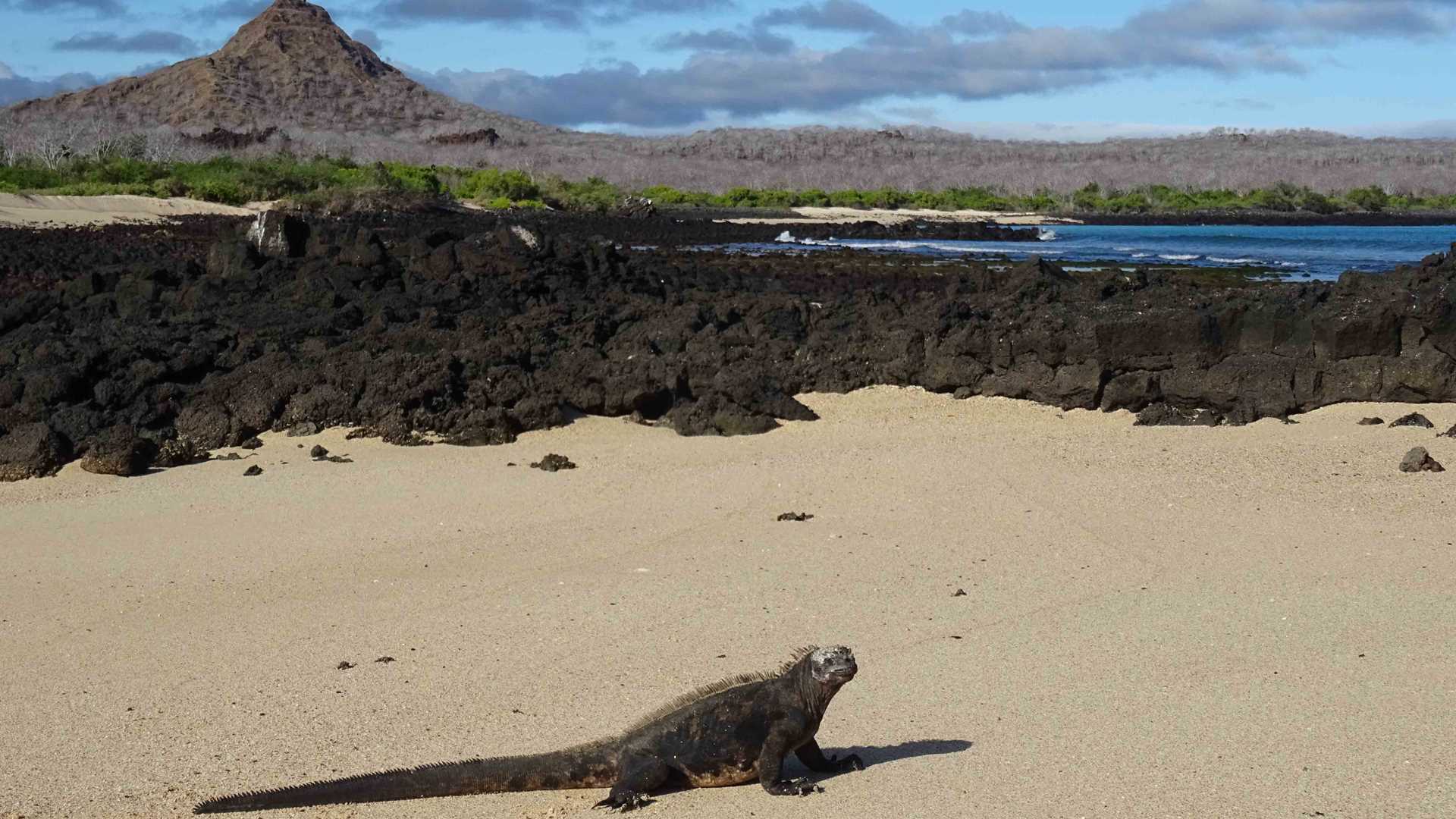 This morning we arrived to the north western part of Santa Cruz Island; after breakfast we headed ashore to Dragon Hill where we went looking for Galapagos land iguanas, we found some colorful males as well as females. The iguanas we saw today looked interested on each other and by their aggressive display these were ready to mate. Males usually bob their heads and walk slowly with trying to look bigger and showing off their bright yellow color skin. As we explored this place we found Galapagos marine iguanas along the coast sunbathing and others were heading to the water to feed.