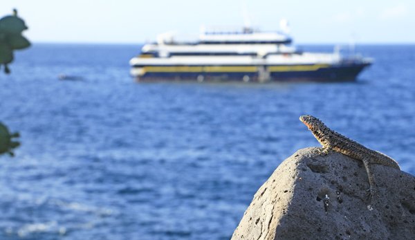 We spent a second day on Santa Cruz Island, the second largest island of the Galápagos Archipelago. This morning everything looked different from yesterday, the town of Puerto Ayora was at the other side of the island; the northern part of Santa Cruz was still green, this was the end of the rainy season. An early hike was offered at Cerro Dragon, where we observed common stilts, greater flamingos, marine iguanas, Galápagos flycatchers, yellow warblers, Darwin finches and Galápagos land iguanas. As an option, a Zodiac cruise was available, a delight for photographers who were able to capture blue-footed boobies resting on the lava rocks together with brown pelicans and plenty of colorful Sally Lightfoot crabs. The afternoon was spent at Eden Islet, another great place for a Zodiac cruise and a great kayaking opportunity. Every time we go out, there is something new to see and that is what I love about these excursions; wildlife is so unique and friendly here, and if you take your time you will see a whole lot and the animals will come to see you. This is what makes Galápagos magic!