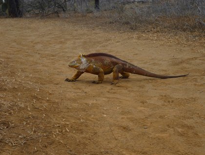 Today we started our day at the northwest end of Santa Cruz Island, at a visitor site of the national park known as Cerro Dragon, named after the Galapagos land iguanas. Before breakfast, we disembarked on a rocky coast that took us to a trail by the coast. The morning was spectacular for our hike, with blue skies and a blazing sun. On the coast we spotted several marine iguanas basking on the green carpet mat plant, creating perfect photo opportunities. Further along, we walked by a brackish lagoon that took us into the land iguanas territory. With the help of our young explorers, we spotted many land iguanas. After learning about the ecology and biology of these endemic reptiles, we continued our climb up the hill. From the top we had an amazing view of Santiago Island and a group of small satellites islets known as Guy Fawkes, named after a British rebel who attempted to blow up the House of Lords in the 1600s.