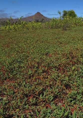 The area has beautiful vegetation, a lot of Sesuvium covering the sand, and the picturesque “leather leaf” along the shore.  “Palo Santo” is the predominant tree species of the dry area of vegetation in the Galapagos. Now it has leaves, but during the dry season it saves its energy by dropping them all. You can find some of the tallest cactus of the islands here. Cacti have evolved into the sizes of trees to be safe from their predators: iguanas and tortoises.