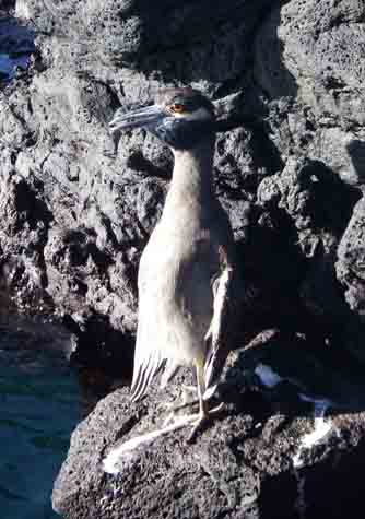 In the afternoon we land for a walk at Puerto Egas, a site were the beach is made up of tuff striations and lava grottos, where fur seals linger in the nooks and many Sally Lightfoot crabs, marine iguanas and herons occupy this large intertidal zone. Even an octopus is spotted in a small tidal pool during the walk.