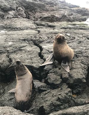In the afternoon, we moved to Puerto Egas just as it started to rain. Meanwhile we had a very interesting presentation about Darwinism given by Princeton professor Graham Burnett. Global Explorers participated in the Fashion the Fish initiative, where they sculpted fish of their own using recycled materials. After this, the afternoon outing started with a rainy walk around the arid zone and intertidal zone of this beautiful island, where we spotted Galapagos fur seals, yellow warblers, Galapagos mockingbirds, Darwin finches, yellow-crowned night herons, lava herons, marine iguanas, oyster catchers, sea lions, frigatebirds, etc. The walk along the shore of Santiago Island was amazing, the landscape of the compacted ash grottos was fascinating. It looked very different from any other placed we have visited along the week.