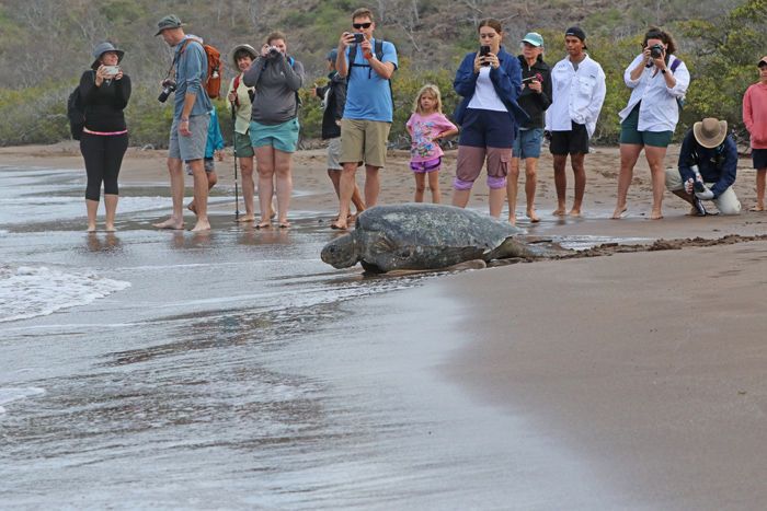 Early in the morning before breakfast, we set off for the first outing of the day. A wet landing on a brown beach marks the beginning of the day’s expedition. Here we did a photo walk along the beach. Here, an incredible amount of life and activity presents itself to us. Diving blue-footed boobies and pelicans, even mating sea turtles.