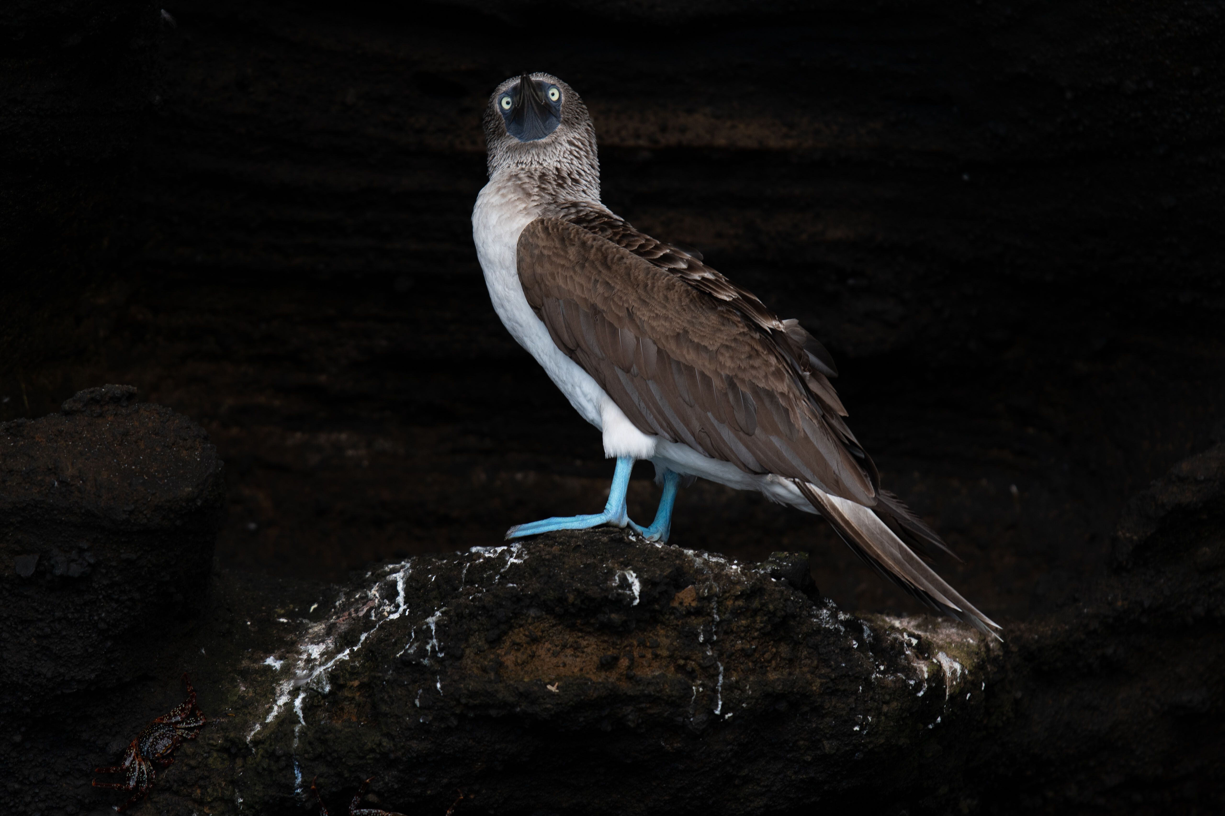 The afternoon was spent in lovely light as we meandered along the shoreline of Puerto Egas. It is October here, and although Galapagos is not on the way to anywhere, we do occasionally spot a few migrating shorebirds. Today there were sandpipers in droves, ruddy turnstones, and semipalmated plovers in a mixed flock. Galapagos sea lions are giving birth these days, so pups of one to two weeks old are starting to appear in the cracks and shelves of tuff stone and lava. Santiago marine iguanas are looking tubby and healthy, and a wonderful feeding frenzy took place near shore while an unidentified whale blew in the far distance.