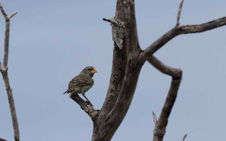 Today, we woke up to the view of Santiago Island's coastline full of green mangroves and mountains in the far background. Early in the morning, we had a pre-breakfast walk along the coastline, with photographers taking advantage of the soft light the early morning offered. We found several Galapagos mockingbirds, ground finches, striated herons, brown pelicans, and a few ghost grabs feeding at low tide.