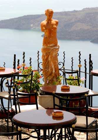 Within the caldera, a morning haze softened the edges of the jagged lava flows and blurred the horizon as the Sea Cloud pulled away from our Greek tender and made for her anchorage between the islands of Nea and Palia Kameni. As we began our tour of the island of Thera it was hard to decide which side of the bus offered the best view: dramatic cliffs plunging into the sea to our left and terraced lava flows of grape vines, tomatoes, and grains gently sloping off to our right!