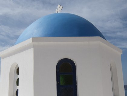 Still recovering from the 120-kg yellowfin tuna that comprised the main course of last night’s meal, most of us managed an early-morning wakeup to view the spectacular sight of Sea Cloud entering the caldera of Santorini shortly after sunrise. We spent the morning exploring the picturesque, cliff-top town of Oia, photographing the island’s famed architecture, and browsing the local arts and crafts on offer.