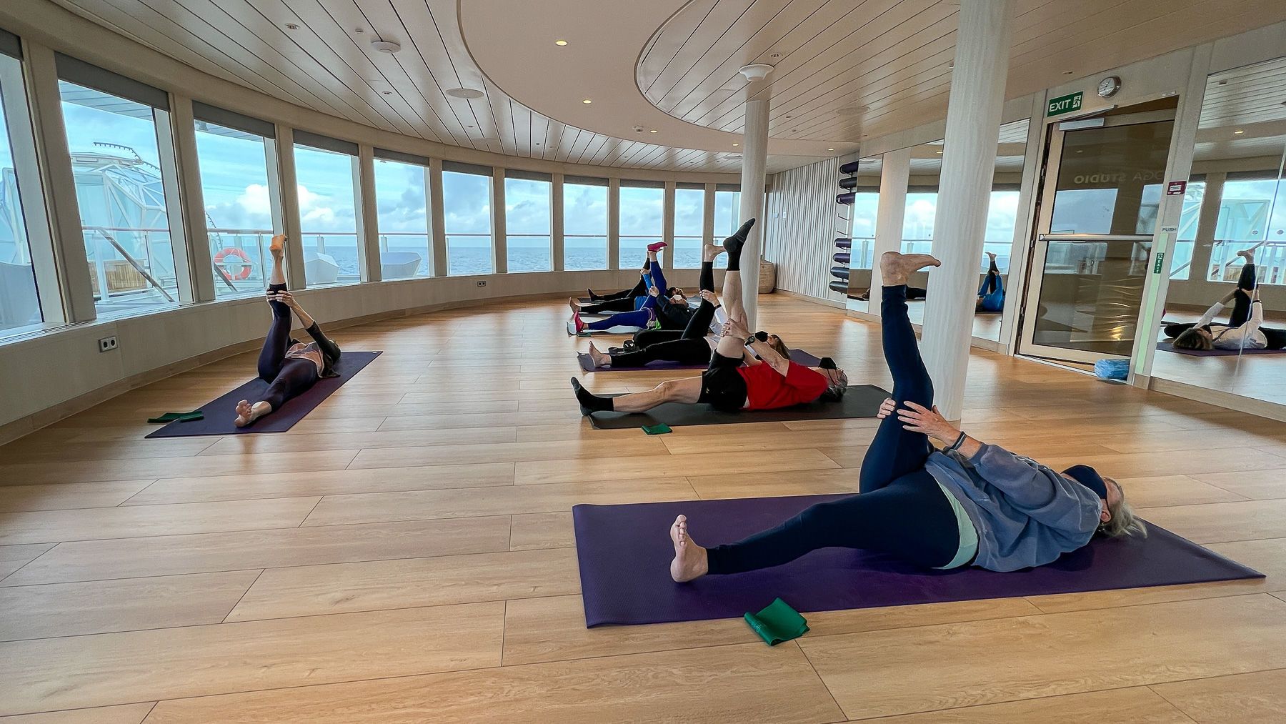 A good group started the day stretching which was probably an excellent idea after all the excitement of seeing hundreds of fin whales last night and the thousands of photos that were inevitably taken.