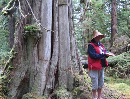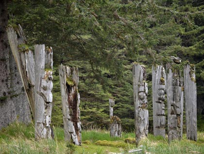 Once we arrived at SGang Gwaay, we were met by three Watchmen, Haida representatives responsible for watching over the island and interpreting Haida history and culture for visitors. The Wailing Island Town, or SGang Gwaay Llnagaay, is a sacred site and found in a sheltered bay on the east side of the island. In 1981, the Historic Sites and Monuments Board of Canada recognized the significance of the village and designated it as a national historic site. SGang Gwaay Llnagaay is one of the best examples in the world of a traditional Northwest Coast First Nations village site. It is the last village site on SGang Gwaay to be occupied on a full-time basis. There are many memorial, frontal and mortuary poles here and its canoe runs are still visible in front of the village.