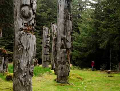 Today was, for me, like walking into a long-awaited dream…at once serene and sad—with carved sculptural shapes of ancient cedar returning to Earth, and the unimaginable losses suffered here. A land fiercely battered by wind and waves yet carpeted with soft nearly irresistible beds of moss. The inhabitants long gone, and yet so very present through what they left behind.