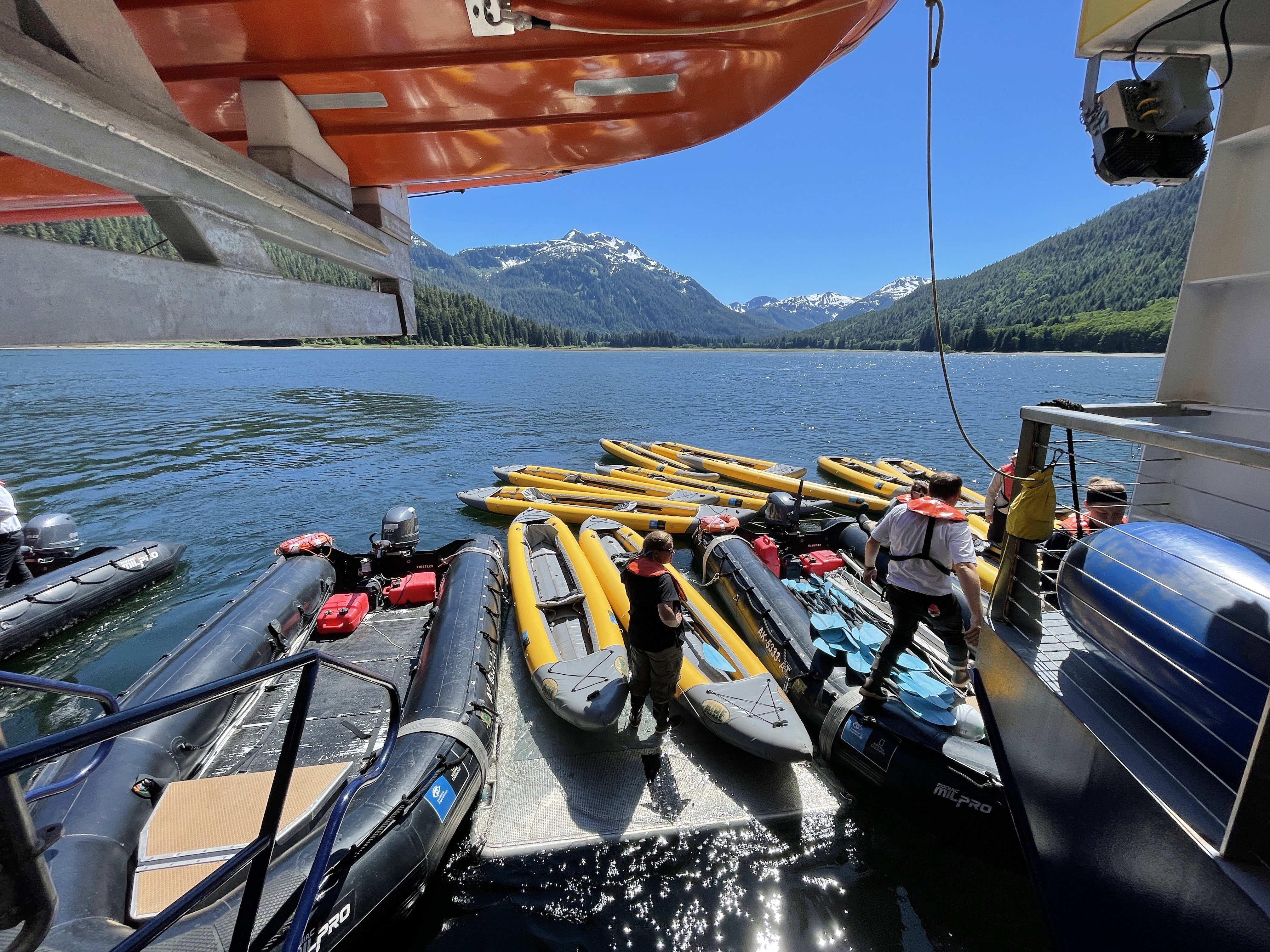 Today we woke up to a gorgeous day here in Southeast Alaska aboard National Geographic Sea Bird . The waters were glass calm as we enjoyed a delicious breakfast. Right as we were finishing up, the bridge spotted a lone male orca swimming around us. We all went out on the bow and were able to see the massive six-foot dorsal fin of the world’s largest dolphin species as it swam around the ship. After we watched this majestic creature fade into the distance, we began our sail up the breathtakingly beautiful Endicott Arm fjord. This area is hard to put into words. We sailed past icebergs with granite walls rising 3,000 feet out of the water directly on either side of the vessel. Waterfalls cascaded down from hidden snowfall and hanging glaciers. Glacial silt coming from the rock flows and mixes with the sea, creating a beautiful green hue in the ocean. Shayne, our Certified Photo Instructor, gave a presentation on smartphone photography and taught us all the settings for these incredible devices. It could not have come at a better time as the Dawes Glacier came into view. After a wonderful lunch, we headed out in our expedition landing crafts to explore the ice field in front of the glacier. Being this close to icebergs and the face of an active tidewater glacier is life changing. The blue of the ice, the crackling of icebergs, the haul outs of harbor seals, and the crash of calving is an experience that will not soon be forgotten. Back on the ship, we were treated to yet another amazing meal before heading into the lounge for a dual presentation by Naturalist Frankie Wilton and Certified Photo Instructor Shayne Sanders. They taught us about "The Story of Southeast Alaska" by talking about the important forest ecology and how to incorporate composition to capture this magic through the lens. It was an amazing first day, and we cannot wait for what is to come.