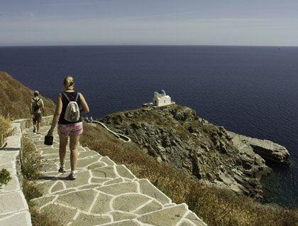Sifnos is an island with something for everyone, which makes it perfect for our final morning. While the original villages of the Cycladic Islands are all hidden up in the hills and mountains where they were out of sight of marauding medieval pirates, Kamares has a charming harbor town that has developed to accommodate mainland Greek visitors who come to the island for its well known cuisine and distinctive pottery. Kamares also has a very nice sandy beach, which offers a refreshing and reflective Aegean swim on our final morning.