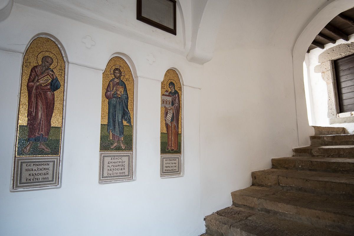 Then we found ourselves on the castle’s upper plateau from which the views where breathtaking! The deep blue of the Aegean was beautiful. At the foot of the steep hillside, on top of a rock, the small Church of the Seven Martyrs with its blue dome stood surrounded by the sea, exposed to the winds.