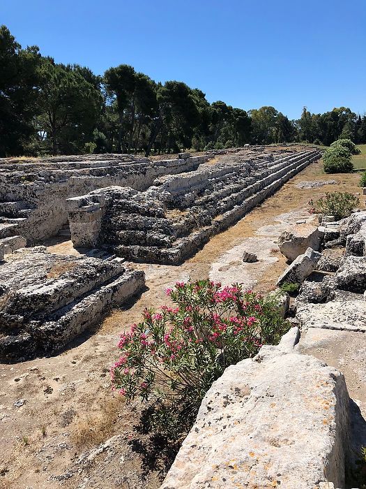 Everywhere you turn in Siracusa, you find ancient stones. “Dig here,” said our guide, “and you will hit treasures.” Siracusa is one of the richest cities in terms of ancient art and history. Christian churches stand next to Greek, Roman, and Medieval styles. This morning at the Archaeological Park of Neapolis we find some of the most important monuments of the Greco-Roman era: the Altar of Hieron II, the Greek Theater and the stone quarries situated at the foot of the theater, the curious Dionysius’ Ear, and the massive Roman amphitheater.