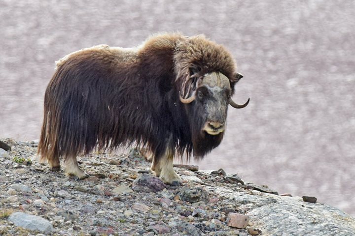 The multi-colored buildings that gave life to the distant tundra indicated that we were approaching the town of Sisimiut. Here we explored by foot, either the town or the wilderness, learning about people and natural history. We visited the fish market and admired the bone carvings that were offered for sale. Sled dogs were a novelty for us on this trip, due to our latitude. These dogs are not pets, but they could be described as partially wild animals that are about one-third wolf. In fact, some of these dogs are left on islands during the summer months, basically on their own. The owner will stop by to feed them seal meat or dog food every couple days. This allows for the hierarchies to settle, and basically for natural selection to play a role in selecting the best sled dogs, that work as a pack, with a leader that has legitimately earned its position.