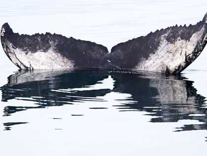Just a few minutes after leaving the blue whale, two humpback whales were seen. National Geographic Explorer slowly approached, and to our surprise the whales did not mind our presence at all. In fact, they rolled around and in a very relaxed way seemed to interact with us, regardless of the contrast between their liquid world and our world of winds.