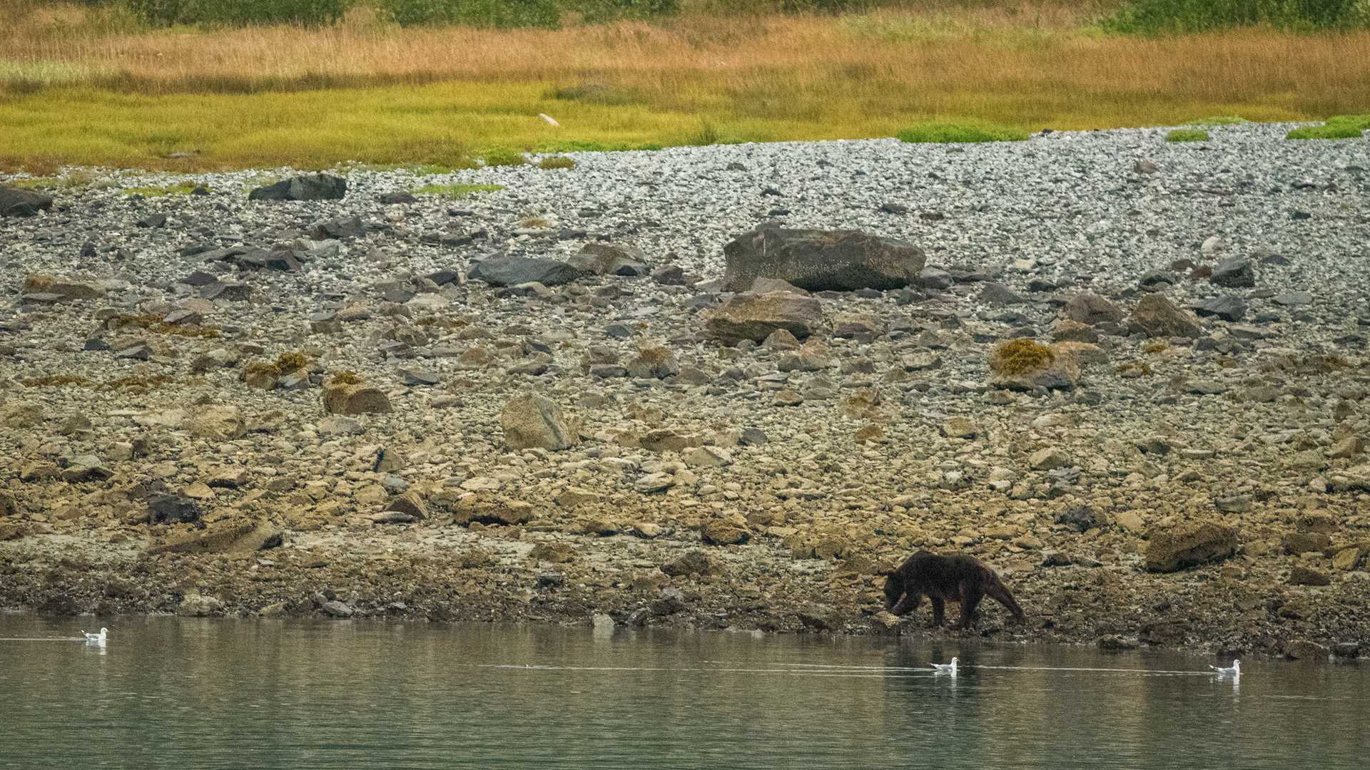National Geographic Quest arose amidst light clouds within the protected waters of Ushk Bay. This area is known for a salmon stream and yields plenty of opportunity for kayaking and exploring the vast meadows of its inner waterways. On this day’s occasion, guests were able to hike and paddle their way along the coast of Ushk Bay and witness firsthand the life cycle of Pacific salmon making their way upstream. As we transited through Peril Strait, we were lucky to see humpback whales. These immense mammals were “lunge feeding” very near our ship. Being able to witness this event was unique for guests and staff. Lunge feeding is process through which individual whales push their gaping mouths through the surface and collect any fish or planktonic invertebrates in the process. Witnessing this behavior was truly a remarkable experience for all. We will cherish this moment for a lifetime.