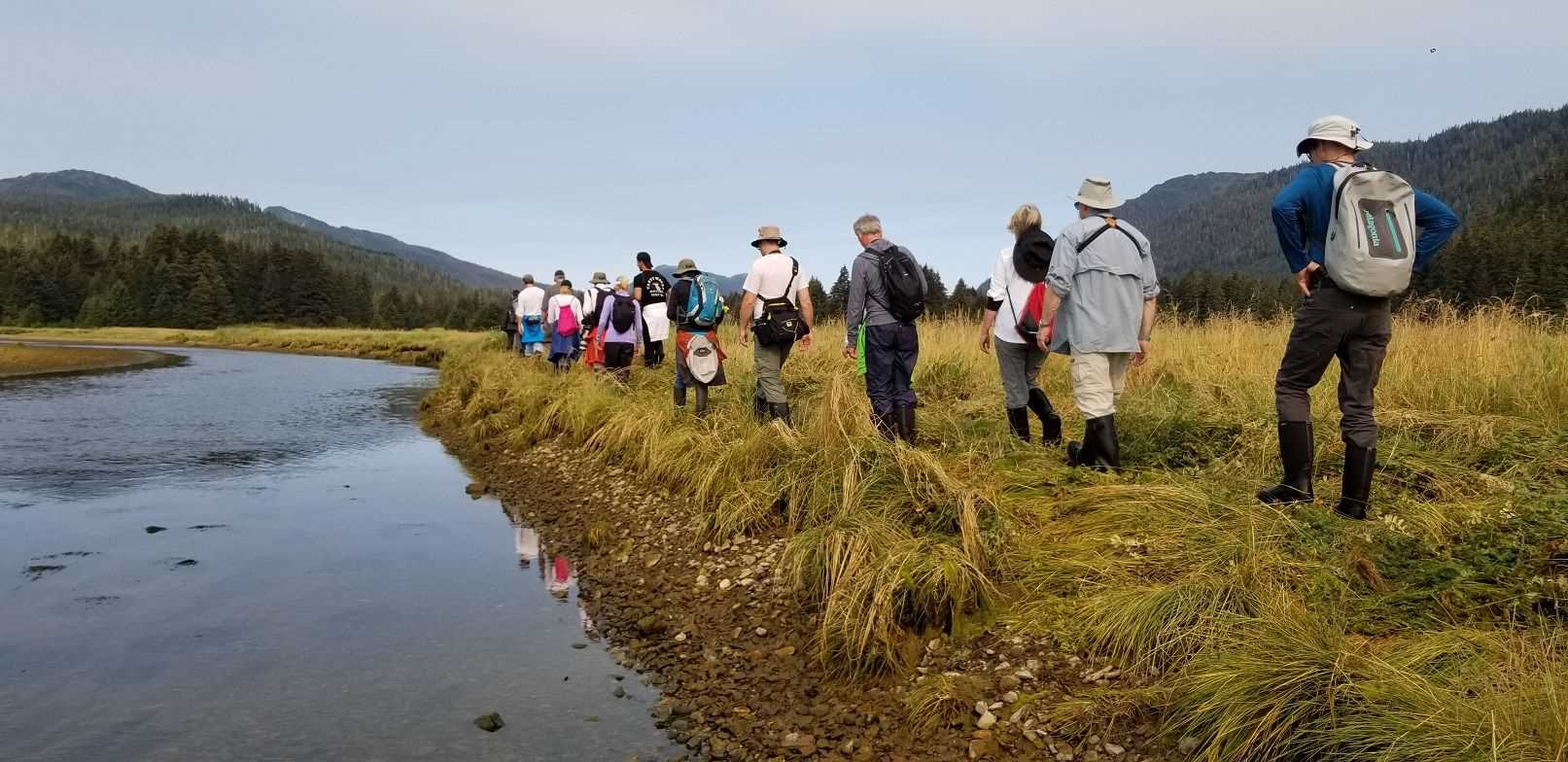 This morning National Geographic Quest dropped anchor in Sitkoh Bay, a beautiful destination at the southern end of Chichigof Island. There is an old logging road that has been restored to support conservation projects up the valley which we will use to lead walks in the temperate rainforest, including one long hike that will go up to the salmon stream at the end of the bay. While some went hiking, others took to the sea and went kayaking and paddleboarding in the beautiful calm water.