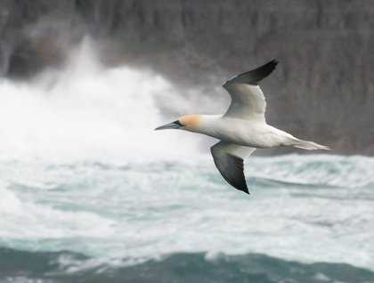 Lesser Skellig harbors a significant portions of the North Atlantic’s breeding Northern gannets. Gannets, relatives of boobies and belonging to the same order as pelicans, are seabirds that make their living in a most impressive way. Soaring over the water and peering downward searching for prey, fishes mainly, they fold their wings back, extend their long necks, and plunge at rocket-like speed into the water below. Reaching depths of several meters only to bob to the surface with the prey in their gular pouches. An estimated 30,000 pair of gannets call Little Skellig home, and as we approached swarms of them could be seen around the jagged cliffs and everywhere over the water with many individuals performing their most impressive dives into the windswept waters.