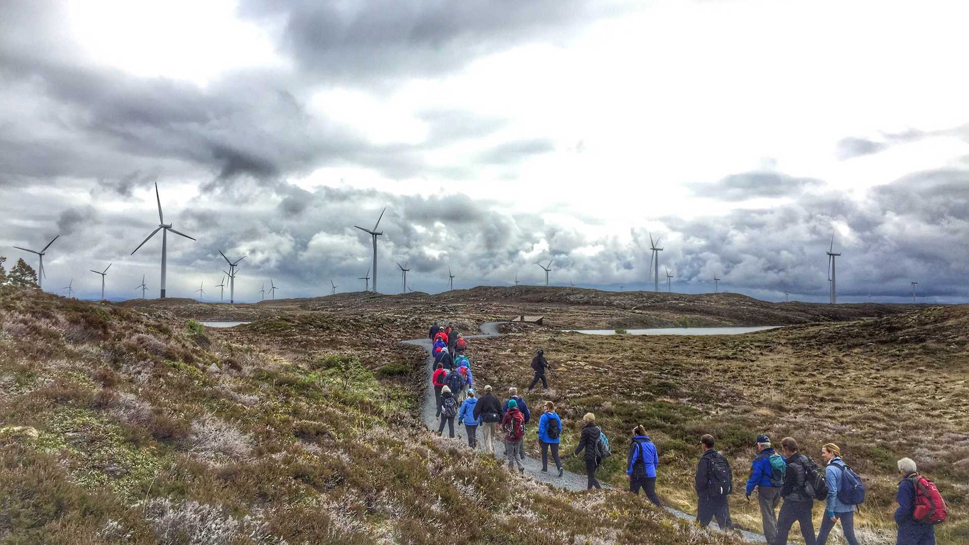 The former village has an active fishing community while the latter village no longer has an active fishing community. The morning hikers were taken over the local heath and bog to gaze upon the 68 wind turbines that supply power to 20,000 homes across Smøla and also on the mainland. The turbines, as elsewhere, have caused some mixed feelings amongst locals. The highlight of the hike was seeing a mountain hare race along the tops of the heather, while a white-tailed eagle glided overheard as the hiking party were nearing the little harbor to take a Zodiac back to the ship.