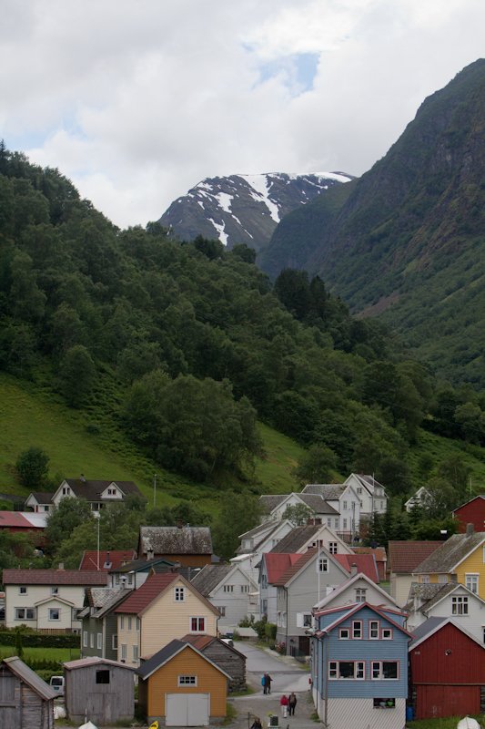 All morning, we sailed farther into Sognefjord and the scenery got more and more dramatic. Snow appeared on some of the higher peaks, and the waterfalls got larger and more numerous.   Beautiful blue sky was a surprise, and stayed with us for most of the day. Just after lunch we arrived at our destination, the tiny village of Undredal.