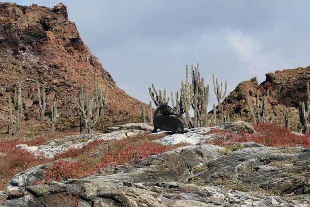 Today we visited two islands, which although close in proximity, have their own beauty and uniqueness. This morning we had a kayak outing and Zodiac ride within the canal between Sombrero chino and the coast of Santiago Island. As we approached the coast of Santiago, our Zodiac driver Maximo spotted our first set of Galapagos penguins in the water, and luckily enough, we spotted a juvenile penguin on land. On the southeastern side of Santiago Island, we also observed a small colony of penguins that nest in the lava tubes close to the shoreline.