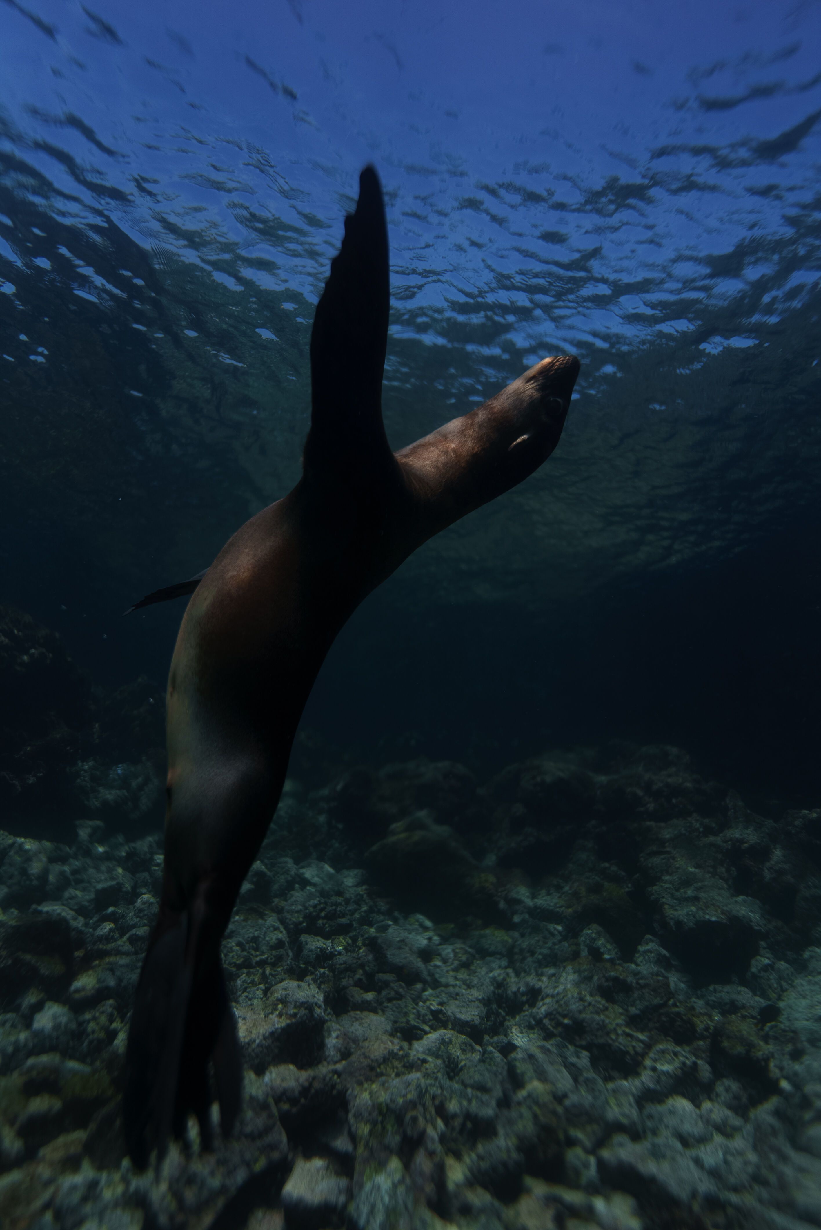 Today was a beautiful day in the Galapagos Islands. We spent our day on the west of Santiago Island in two mesmerizing locations. Sombrero Chino is a small volcano shaped like a hat that sits in perfectly turquoise waters. Here we started early with a stretching session on a small, white sandy beach where even a couple of sea lions joined the stretch. After breakfast, we went out again, this time to explore the coastline and look for Galapagos penguins. These small but very charismatic penguins have a small colony in the area. By Zodiac or kayak, we had a chance to see them and learn all about them from our naturalist. However, the morning was not over. We had the opportunity to snorkel in a small channel along the Sombrero Chino Islet. This site offers opportunities for close encounters with the underwater wildlife of the archipelago. Among the colorful fish, we found reef sharks, lots of sea stars, and a couple of friendly sea lions that interacted with our guests. We even got a quick glimpse of the very fast Galapagos penguins as they swam underwater.
