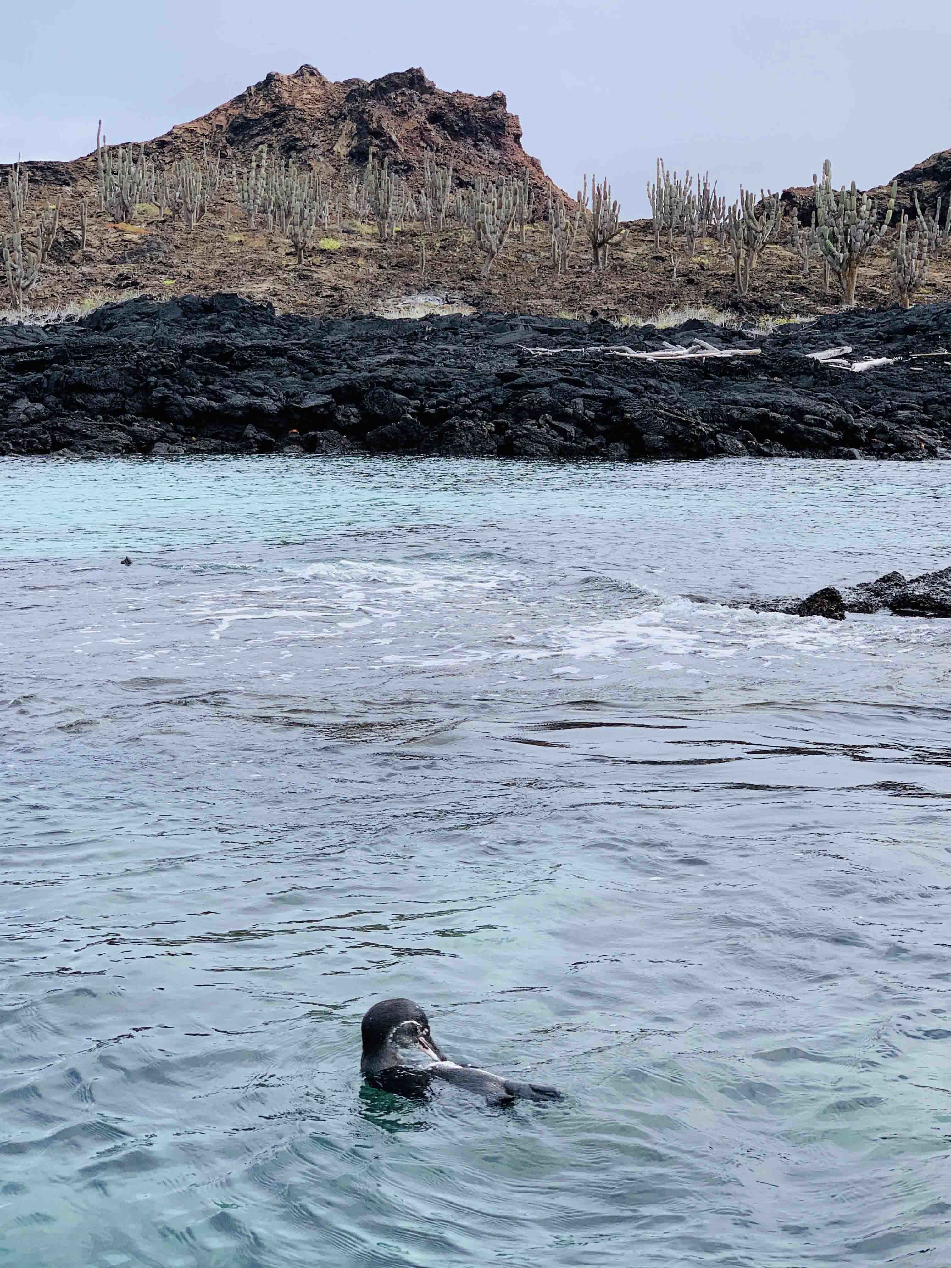 Today, we learned a bit about our surroundings by visiting Sombrero Chino Island, a spatter cone formation just off the coat of Santiago Island. After an informative morning of geology, flora, and fauna discoveries, we headed to Sullivan Bay which has a relatively fresh lava flow. It may take some time before this area starts to populate as the other islands have, but it was interesting to see and learn about early colonizing plants and animals.