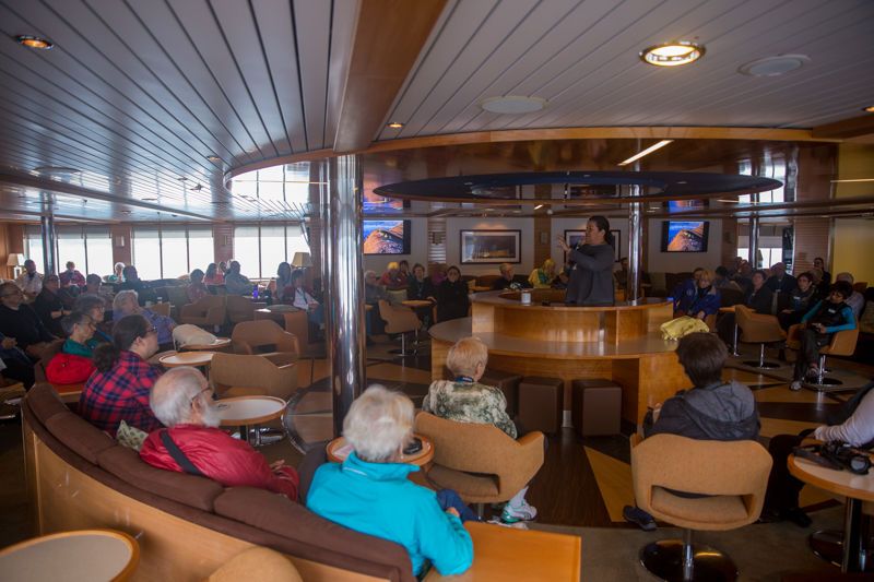 We woke up early in the morning as National Geographic Islander navigated along the northern part of Isabela Island. Slowly the sun appeared above the clouds surrounding Volcano Wolf. We spotted our first birds as Galapagos fur seals returned to shore from their night hunt. We enjoyed a great breakfast. Afterward, expedition leader Vanessa called everyone to the bow to celebrate as we crossed the equator. Our guests happily crossed the line. Approaching Punta Vicente Roca, the visitor site, we spotted Galapagos sea lions and a good number of ocean sunfish. The first activity of the day took place as we dropped anchor at Punta Vicente Roca. This is a spectacular geological site. The combination of the former volcano’s tall cliffs and the tuff cones formed later adds an amazing contrast to this unique visitor site. Our best tools for exploration, our Zodiacs, were lowered down, and off we went to explore the coast. We observed Nazca boobies and blue-footed boobies resting on the small ledges of the tuff cones. Galapagos sea lions swam close to our Zodiac, and Galapagos penguins rested on a broken piece of the tuff cone after feeding. What a wonderful sight! In a calm area, we found a good number of Pacific green sea turtles. The morning’s activities ended with snorkeling. Pacific green sea turtles, plenty of colorful fish, Galapagos marine iguanas and flightless cormorants surrounded us. It was a phenomenal experience! The ship was repositioned toward Fernandina Island. The youngest island of the archipelago, Fernandina is a highlight of our expedition. This island shows our guests the beginning of life. We observed animals thriving in the hostile environment. Pioneer plants like lava cacti grow on the lava fields, breaking down rocks little by little to create soil for the next generation of plants. Punta Espinoza is known for its huge colony of Galapagos marine iguanas. It is hard to distinguish the iguanas from rocks since they are so dark in color. On the other hand, colorful Sally Lightfoot crabs added contrast to the young, dark lava fields. We ended our walk as the sun was setting, returning to the ship with great memories. It was a fantastic day in the western part of the archipelago.