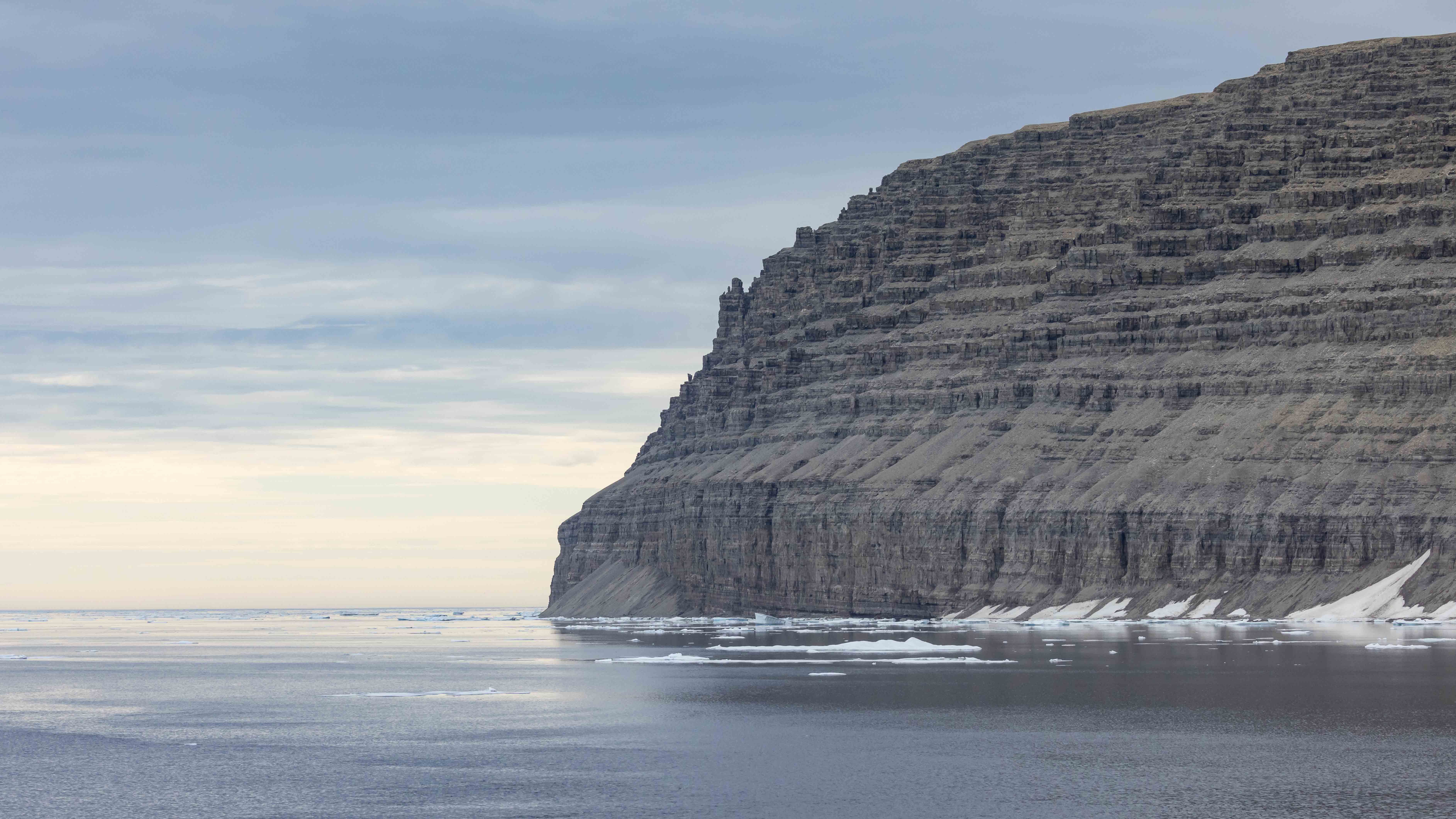 We explored the area around Port Leopold, a location with Thule houses and the remnants of a short-lived Hudson’s Bay Company station. Fast ice and two polar bears prevented us from landing, but we admired the cliffs, sea ice, and groups of guillemots from our small boats. The polar bears were quite far away, but some of us managed to spot them amongst the seals.