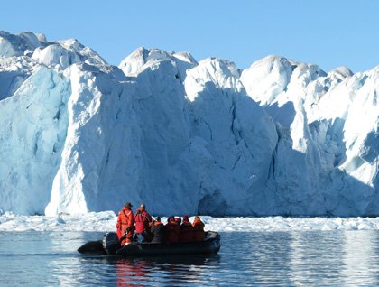 Cruising along the front of the glacier also gave us some of the greatest calving we have experienced this season. A massive iceberg calved off of the glacier creating a lot of ice debris at the front, with a big swell that even our ship–the National Geographic Explorer reported to have felt as the wave hit the ship. To have the chance to see this at a safe distance on the Zodiac is really a great experience, as it is to cruise amongst the great icebergs that already have calved off and are floating in front of the glacier.