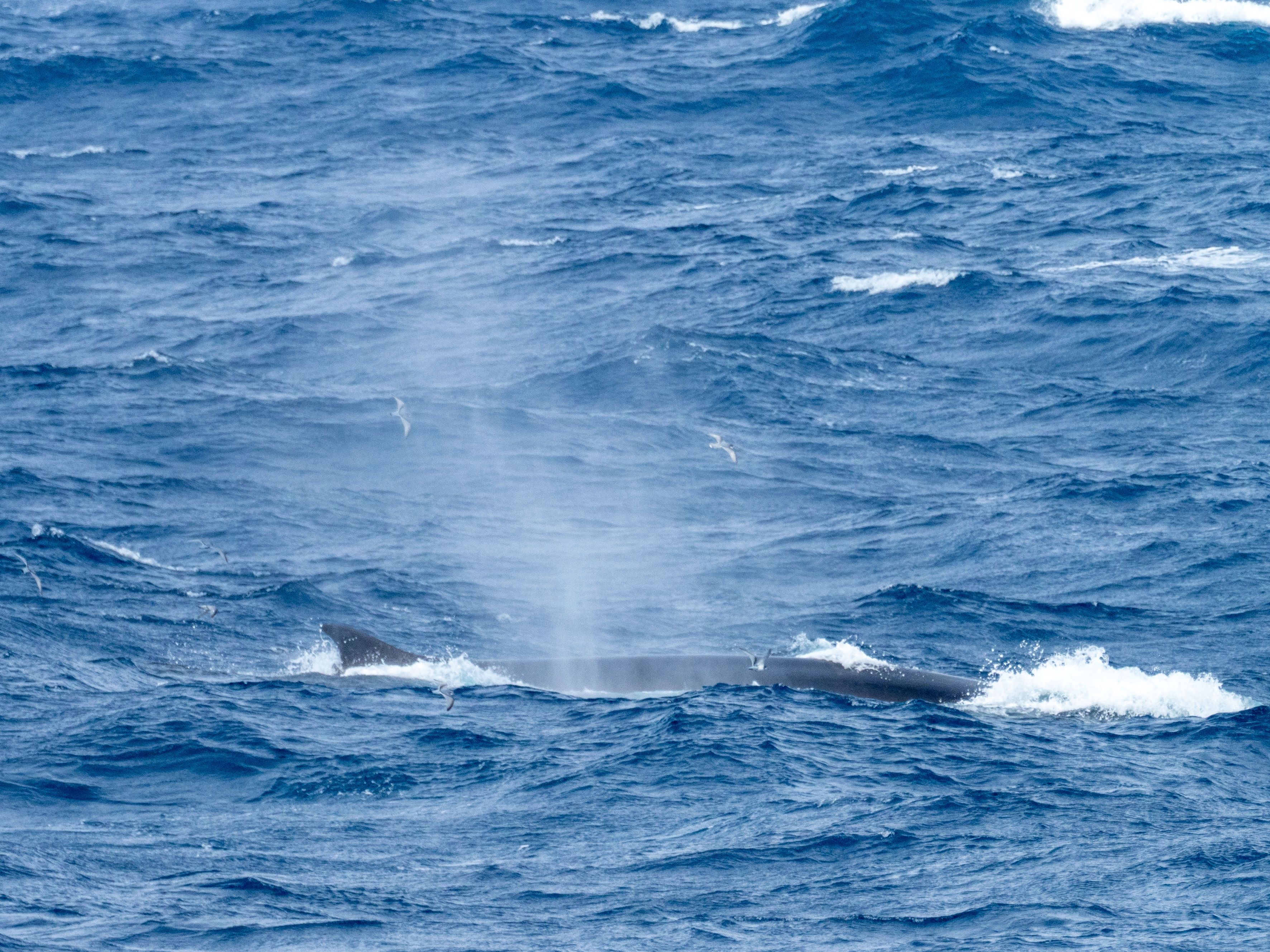North of the islands, we encountered a fleet of krill-fishing boats. These trawlers often indicate the presence of whales, since the crews are fishing for the very food the whales depend upon. As we passed by the fleet, fin whales surfaced in almost every direction. Hundreds, potentially thousands, of pelagic seabirds circled the boats and us in turn. It was impressive to behold such a huge amount of wildlife in the middle of a gray and seemingly lifeless ocean.