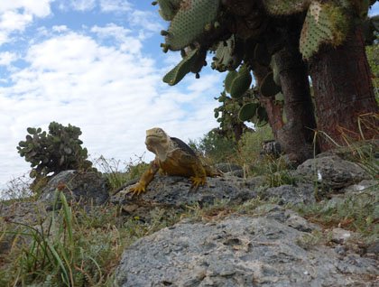 Our first delight is the surrounding landscape. Once you reach the calm shallow shore you are greeted by baby sea lions. When we landed we spotted land iguanas coming out of the cactus forest and some of them gathered underneath the cactus trees waiting for fruit to drop off. This island is not only home to a colony of iguanas and sea lions, it is also a breeding colony for sea birds like swallow-tailed gulls, tropicbirds, Galápagos shear waters and land birds as well, like the iconic cactus finch.