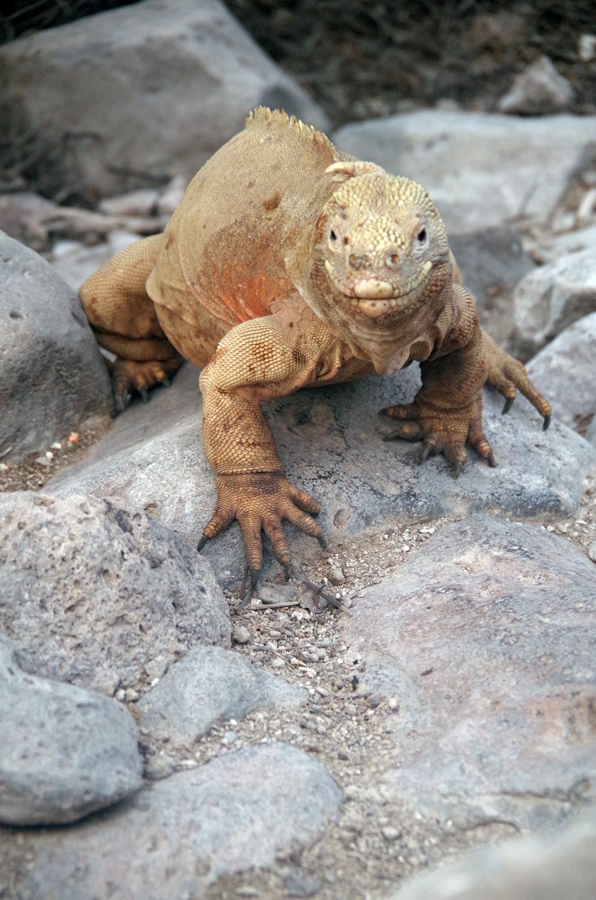 We went back on board the National Geographic Islander and another activity was offered: swimming off the ship. It was lot of fun jumping into the water from a small platform located at the first deck and very refreshing at the same time. The weather has been fantastic and today was not the exception. A cool breeze kept the temperature agreeable while the sun went through the clouds warming the day and providing with great light for the captions. The National Geographic Islander navigated towards Santa Fe island for new discoveries. There was a Kayak and a deep water snorkeling option. Our guests came back very happy, kayaking is not only a good exercise but as well a great opportunity to observe in detail the rugged volcanic coastline of Santa Fe with its high cliffs and hundreds of huge prickly pear cacti. The snorkeling site is very good indeed, the underwater world of the Galapagos Archipelago is unique and diverse, from colorful to silvery fish, rays and sea lions! This day but came to an end with a nice hike along the coastal line, disembarking first at a white sandy beach that today was covered by sea lions, at least we saw one hundred! Males, females, pups were resting, we can watch them for hours! We continued our walk towards the rocky cliffs, where we encountered the unique Santa Fe land iguanas; this creatures are normally very shy and we never know how close we will see them, however this afternoon they were all around the cliffs, males, females, even together! One female land iguana decided to walk through the group, steping on several guests shoes. It was just incredible, when we found the top predator of the Archipelago resting on the monument which reminds all the tourists the following: “the fauna and flora of the Galapagos Islands is strictly protected by law” and for sure by the hawk. What a day, and still the question arises: can it be better tomorrow after all we have seen? And I can only smile, yes it will be better, because you are in heaven.