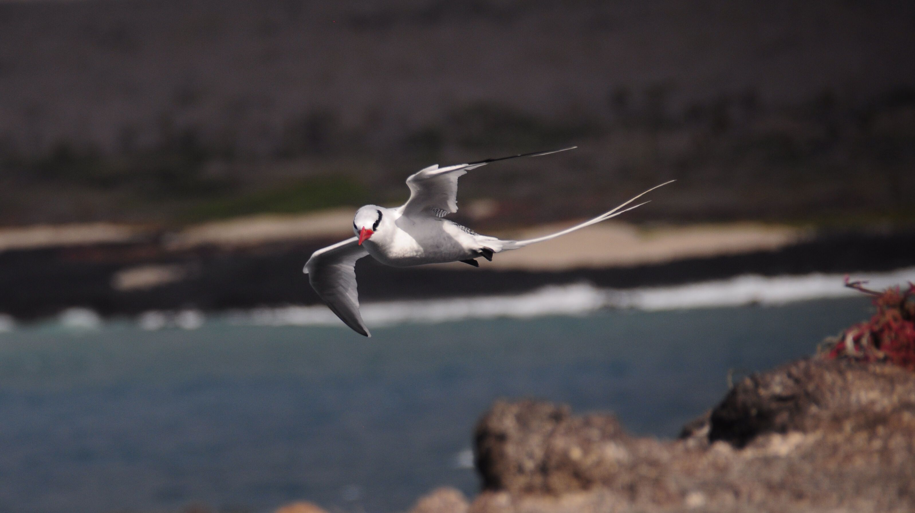 We spent the morning on the small island of South Plaza. We were welcomed by Galapagos sea lions; females and pups were all around the landing place. There are a good number of Galapagos land iguanas on South Plaza, and we observed them underneath the prickly pear cacti along the trail. As we walked by the cliffs, we saw many seabirds flying, such as swallow-tailed gulls, Galapagos shearwaters, brown pelicans, magnificent frigatebirds, and red-billed tropicbirds. It is a challenge for photographers to get pictures of birds in flight; however, with the right settings and patience, it is always possible! The afternoon was spent at the island of Santa Fe. Here we enjoyed kayaking and snorkeling inside the protected bay, a great place for colorful fish and playful Galapagos sea lions. We ended the day with a great hike. We observed huge prickly pear cacti, Santa Fe land iguanas, and hundreds of sea lions on a white sandy beach. It was a fantastic day in paradise!