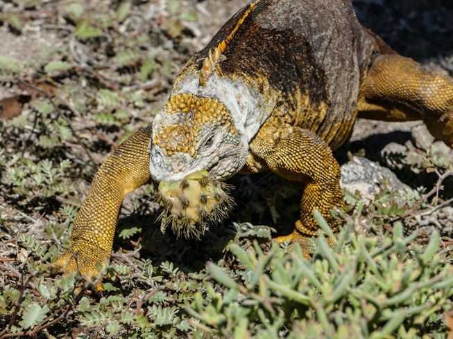 The afternoon at Santa Fe Island was a different pace—bigger, deeper, an escarpment to be climbed, a rocky complex of trails to be crossed, the pale gold of the land iguana of the land iguana to be found and appreciated. And found they were, to include many other sightings and equally treasured experiences!