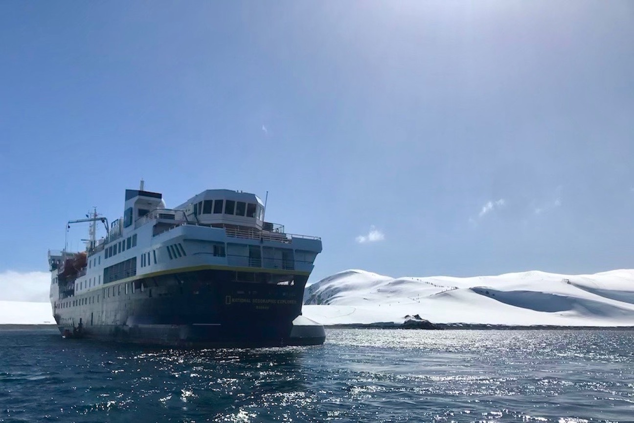 This morning, National Geographic Explorer entered Yankee Harbour located on Greenwich Island. It was here that we were met with beautiful early morning conditions and a welcome party of inquisitive gentoo penguins and a solitary leopard seal that was on the prowl. Hiking or Zodiac cruises were our options during our morning in Yankee Harbour, both returning guests with bright smiles and full SD cards.