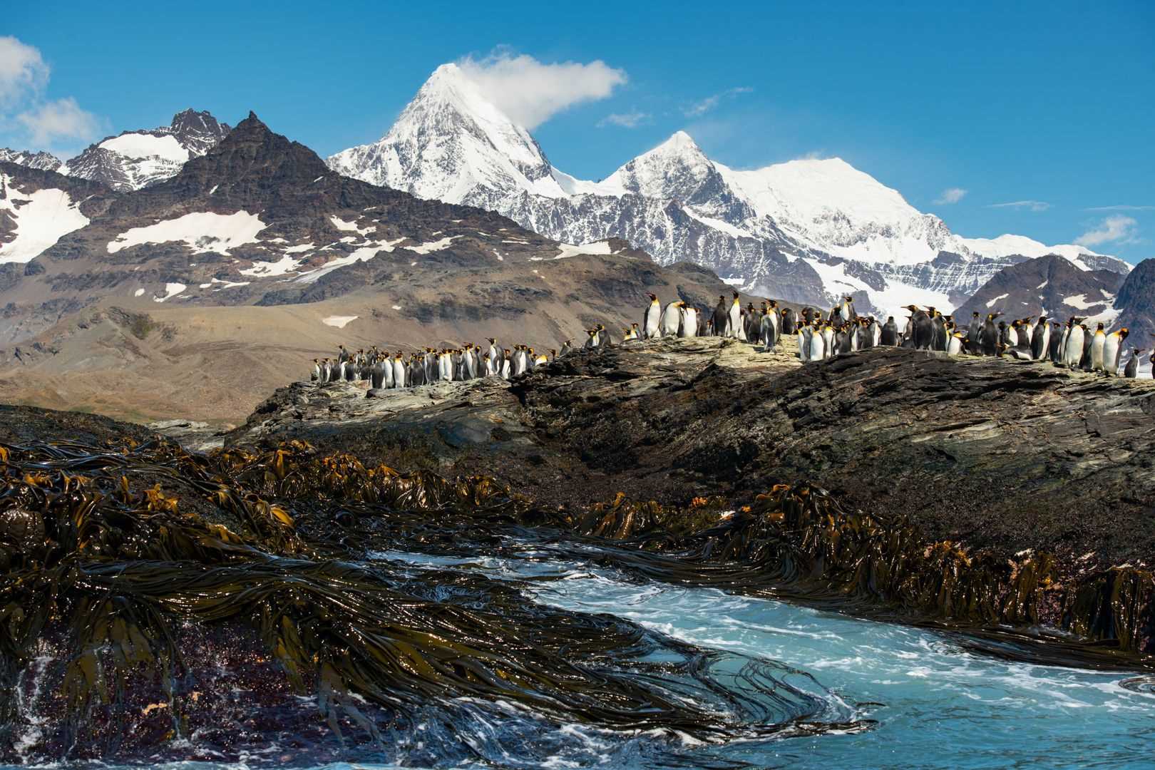 From the very beginning, when we arrived on the beach at St. Andrew’s Bay beneath a patchwork of puffy clouds and warm weather, we were off to a great start. Just getting ashore can often be challenging but today, swell and weather were in our favor so we took the opportunity and traipsed amongst the din of 250,000 pairs of king penguins, South Georgia’s largest colony. These charismatic birds not only covered many square miles of post glacial landscape but were stacked thick along the small adjoining islands of the bay. Sea and penguin layered by cloud and mountain top.