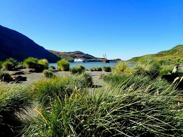 It was a beautiful afternoon, warm and sunny. On the medium hike, we picked our way around mostly very young fur seal pups and the occasional mom as we headed to the waterfall, the perfect place to sit or lie on the grass. It was a bit difficult to get everyone up and moving again, but there were elephant seals to be gawked at and an intriguing wreck to be admired and photographed. Just another day on beautiful South Georgia Island.
