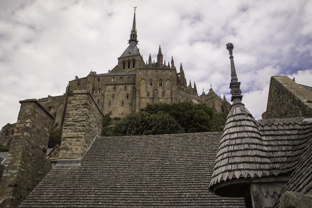 Our morning was devoted to a visit of one of the marvels of European mediaeval architecture, Mont St Michel, just over the border from Brittany in the neighbouring province of Normandy. On an ancient site that is thought to have housed an Early Christian anchorite in the sixth century, the mount that rises above the expanse of sand in the great bay was developed over centuries by a community of Benedictine monks so that today it tells the story of mediaeval church architecture in dramatic fashion.  An impregnable stronghold, Mont St Michel had a military function as well as a spiritual one, very much in keeping with Norman traditions. During the years of the French Revolution there was some unfortunate iconoclasm and the building was used as a prison. It has also been a place of pilgrimage for centuries, a tradition maintained in modified form by modern tourism. Recent developments at the site in respect of tourism have been very positive. A decision was taken a few years ago to dismantle the causeway and associated parking for cars and coaches so as once again to allow the incoming tides to swirl around the base of the mount. The restoration of the landscape has been dramatically successful with some new archaeological features being revealed as an additional bonus, including an ancient quay the southern gate long buried in the accumulation of sand.