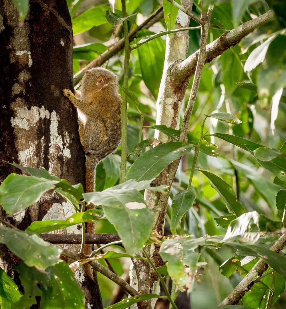 A brand-new day of our expedition started with a beautiful sunny morning. The latter contributed a lot for a relaxed exploration of the Supay Caño, a small tributary of the Ucayali River and our first visitor’s site of the day. Right after breakfast we boarded our fleet of skiffs to explore the area. We found many neotropical bird species like yellow-billed terns, black-collared hawks, colorful tanagers, etc. We spotted other creatures like green iguanas, a vine snake, and some monkeys like the pygmy marmoset as well. The latter is the smallest monkey in the world. All of this wildlife was surrounded by an exuberant green forest.