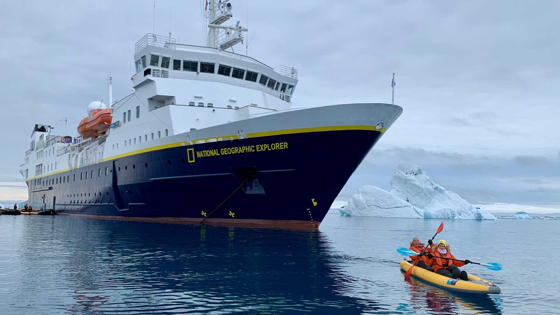 Today we explored the north of the Weddell Sea. Traveling between Joinville and Dundee Island, we arrived at our morning destination, Tay Head, where we could stretch our legs while visiting some penguin colonies, right before enjoying the calm ocean by kayak. Our bravest explorers had the chance to jump into the frigid waters of the Weddell Sea during our famous polar plunge right before lunch.